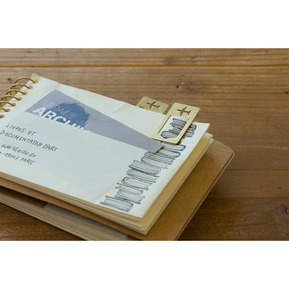 This TRAVELER'S FACTORY Original Brass Clip features our unique airplane design. You can utilize it to index certain pages or maybe mark a stopping point in your favorite book. Not only is it convenient to attach to your TRAVELER'S notebook, refills or books, but its rustic look over time, combinedĀ with the airplane motif will let your mind take flight.