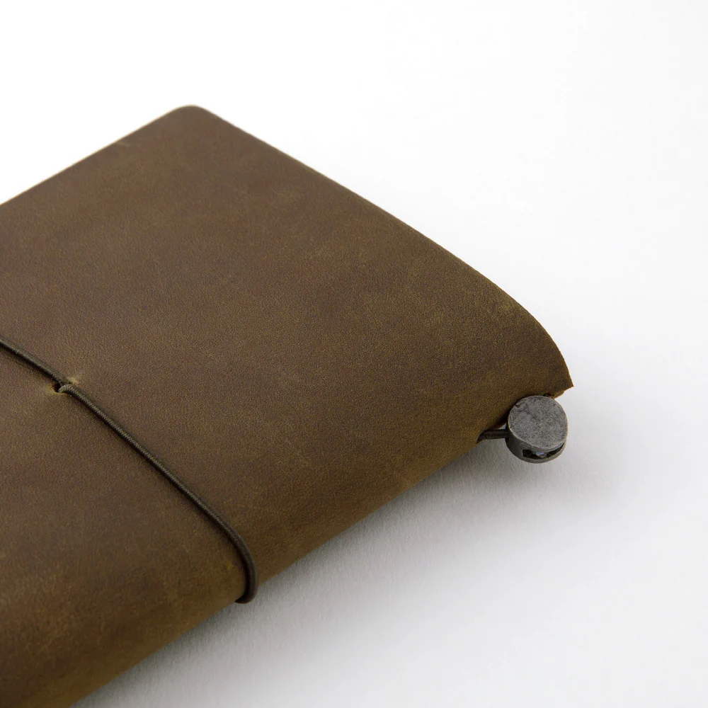 Passport sized TRAVELERāS notebook starter kit in olive.Ā The color was inspired by the deep color of virgin forests with roots that stretch back to prehistoric times. We aimed to create a color that evokes a journey into the outdoors.